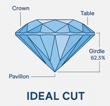 Diamond cut is the most critical of the 4 C’s. It determines how a diamond’s proportions, symmetry, and polish interact with light. A perfect cut returns light through the top, producing maximum brilliance and fire.